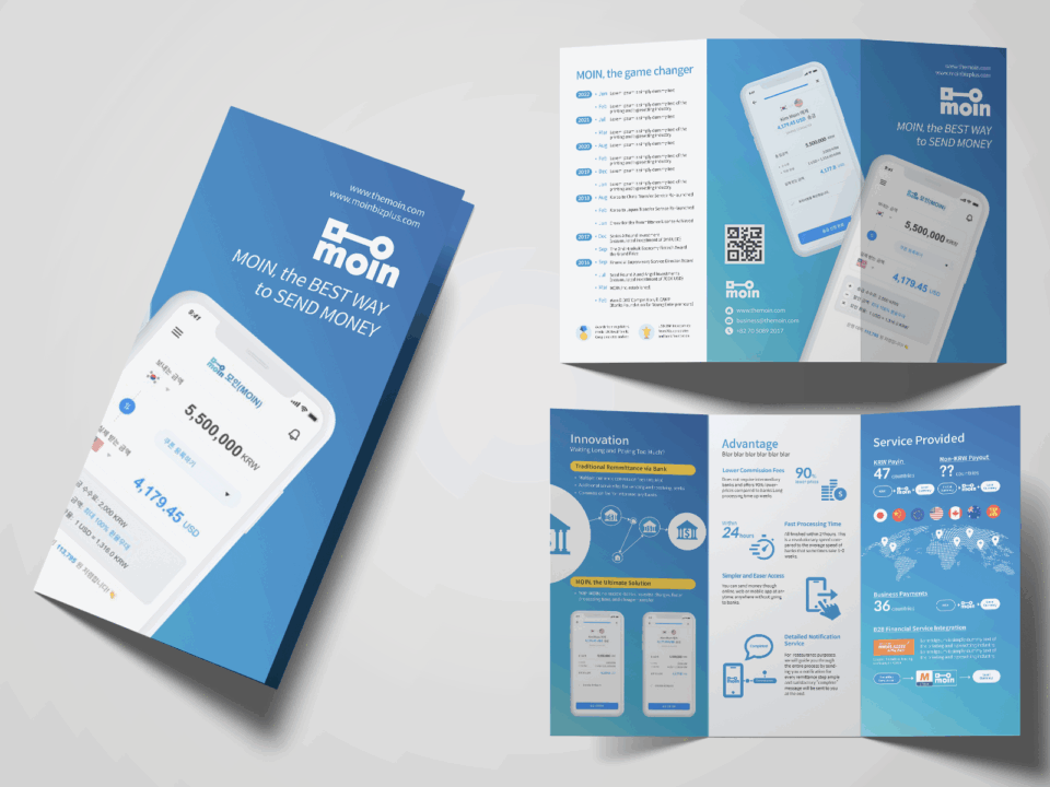 - As a digital-first fintech service, Moin lacks a physical presence. In offline settings like study abroad fairs or partner banks, we needed a tangible touchpoint to build trust. However, traditional financial leaflets are often cluttered with jargon and text, leading to low engagement. Our challenge was to design a leaflet that is not only visually appealing but also compels the user to open the app immediately.
